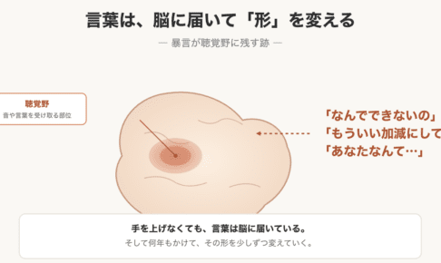 「手は出していないから、うちは大丈夫」 そう思っている親御さんは、とても多いと思います。 私も、ずっとそう信じていました。 叩かない = セーフ 言葉で叱る = しつけの範囲内 なんとなく、そんな線引きで自分を安心させて…